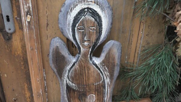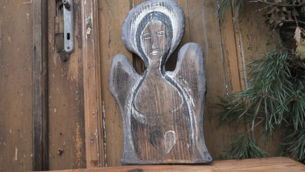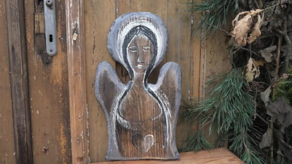 Anioł na starej desce w kolorze szarym