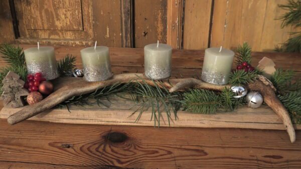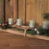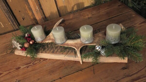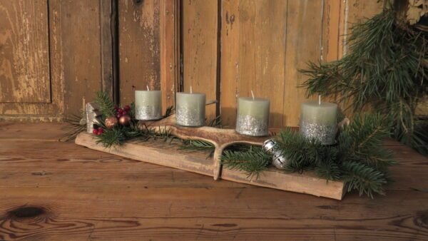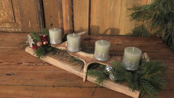 Stroik z porożem i świeczkami na starej desce