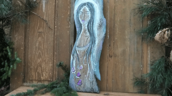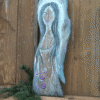 Duży anioł na starej desce w kolorze niebieskim