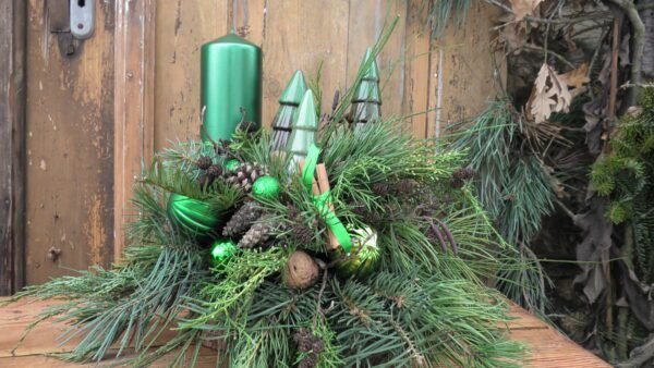Stroi wykonany z żywych gałązek, świerku ,tuj ,żarnowca, jodły itp. z naturalnymi dodatkami. Świeca jest głównym elementem, ceramiczne choineczki, jak i plastikowe bombki.