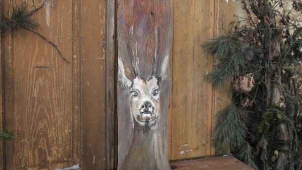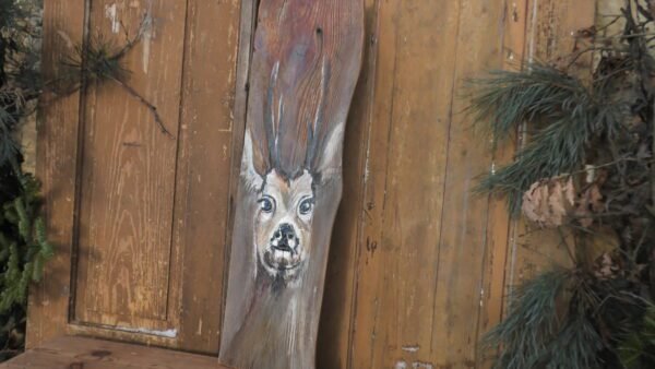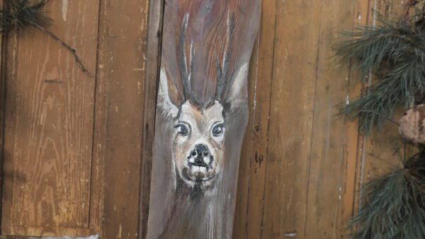 Obraz na zaimpregnowanej desce namalowany farbami przedstawiający jelonka.